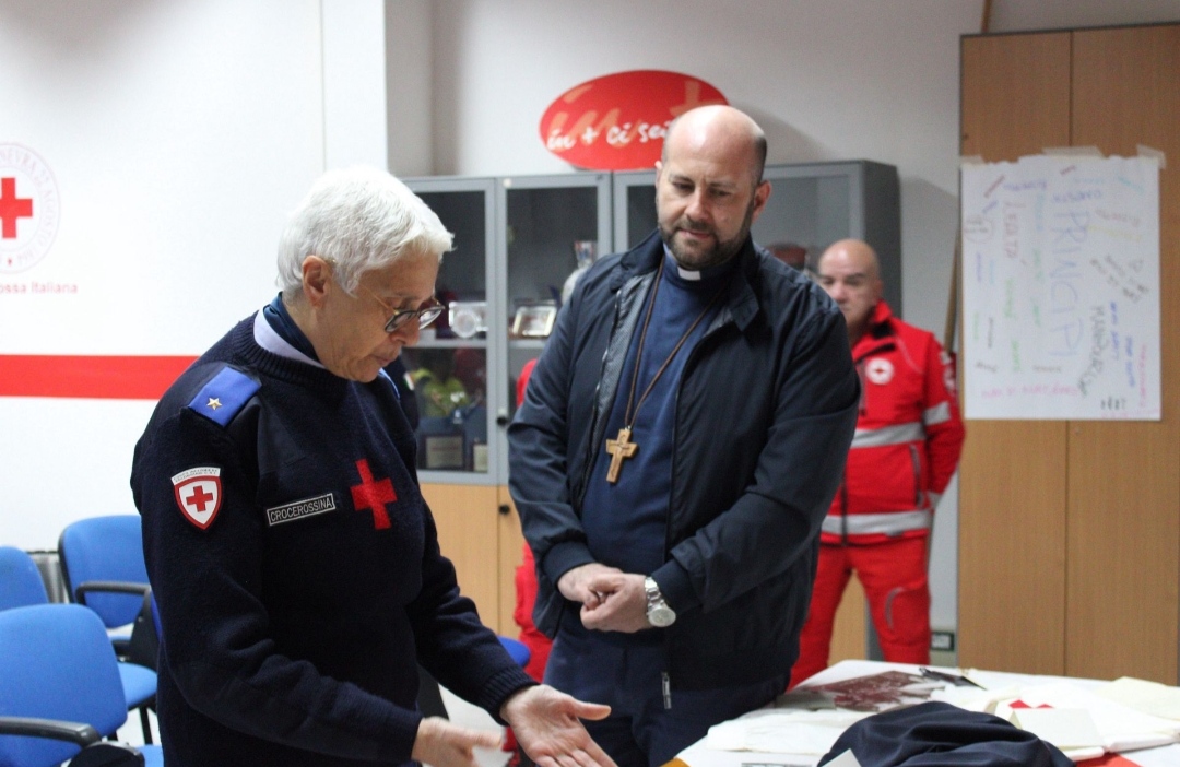 Nella giornata di Lunedì 6 Novembre, il Vescovo di Rieti Sua Eccellenza Mons. Vito Piccinonna ha visitato la sede del Comitato della Croce Rossa Italiana, potendo anche osservare l’importante archivio in essa contenuto. Oltre a salutare i tanti Volontari riuniti per l’evento, ha preso parte alla visione di documenti risalenti alla Prima e Seconda Guerra Mondiale.