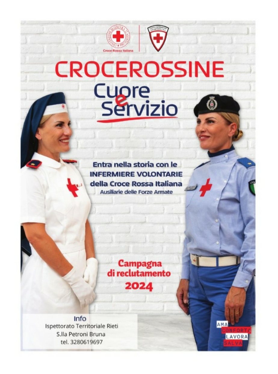 informazioni circa i requisiti previsti e le modalità di iscrizione direttamente presso l’Ispettorato Infermiere Volontarie di riferimento, consultando il sito all’indirizzo https://cri.it/cosa-facciamo/volontariato/corpo-infermierevolontarie-cri/# oppure contattando l’Ispettrice territoriale del Comitato di Rieti, reperibile  al contatto telefonico indicato in locandina.